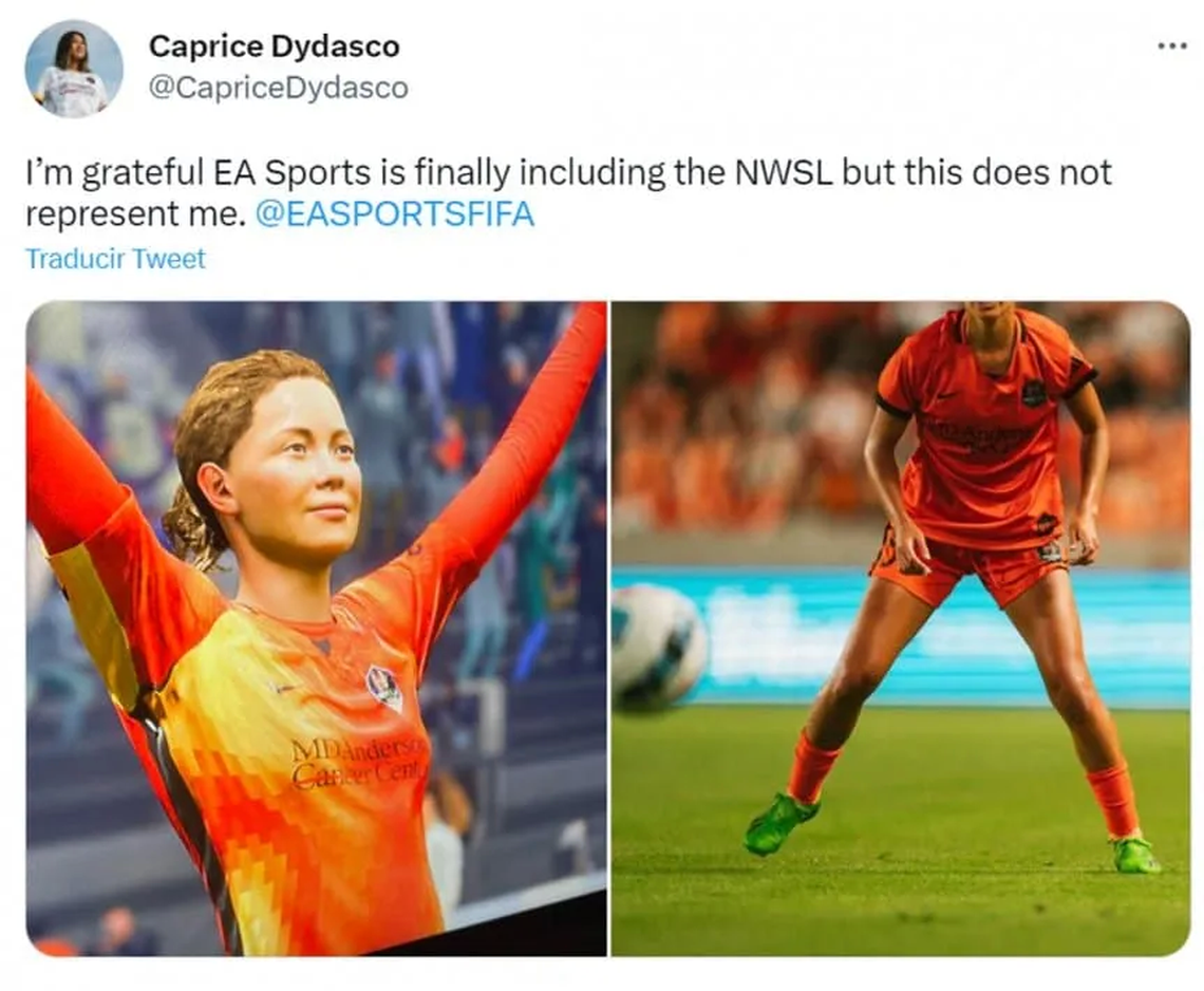 «Agradezco que EA Sports incluya por fin la NWSL, pero esto no me representa», escribió Caprice Dydasco, defensora de Houston Dash. Frente a este tuit, Katie Stengel, atacante del Liverpool, le contestó: «Agradece que te hayan puesto pelo”. Esto último, en referencia a que, por algún error, algunas futbolistas aparecen calvas.