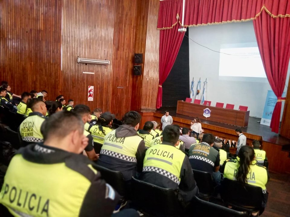 La reunión se realizó en el Auditorio de la Sub Jefatura de la Policía y contó con la participación de la subdirectora de Adolescentes en Conflicto con la Ley Penal Andrea Salinas Saguir y los técnicos del Centro de Admisión y Derivación (CAD) Gonzalo García (abogado), Cinthia Frías (psicóloga) y Mauro Ardiles (licenciada en trabajo social).