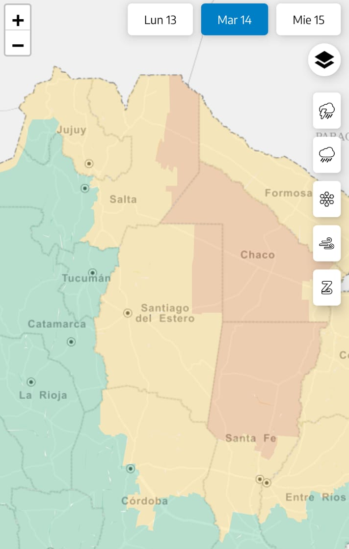 Según el último mapa de alertas del organismo nacional, gran parte del Noroeste Argentino (NOA) y del Noreste (NEA) se encuentran bajo alerta amarilla, lo que implica la posibilidad de fenómenos con capacidad de daño y riesgo de interrupción momentánea de actividades cotidianas.